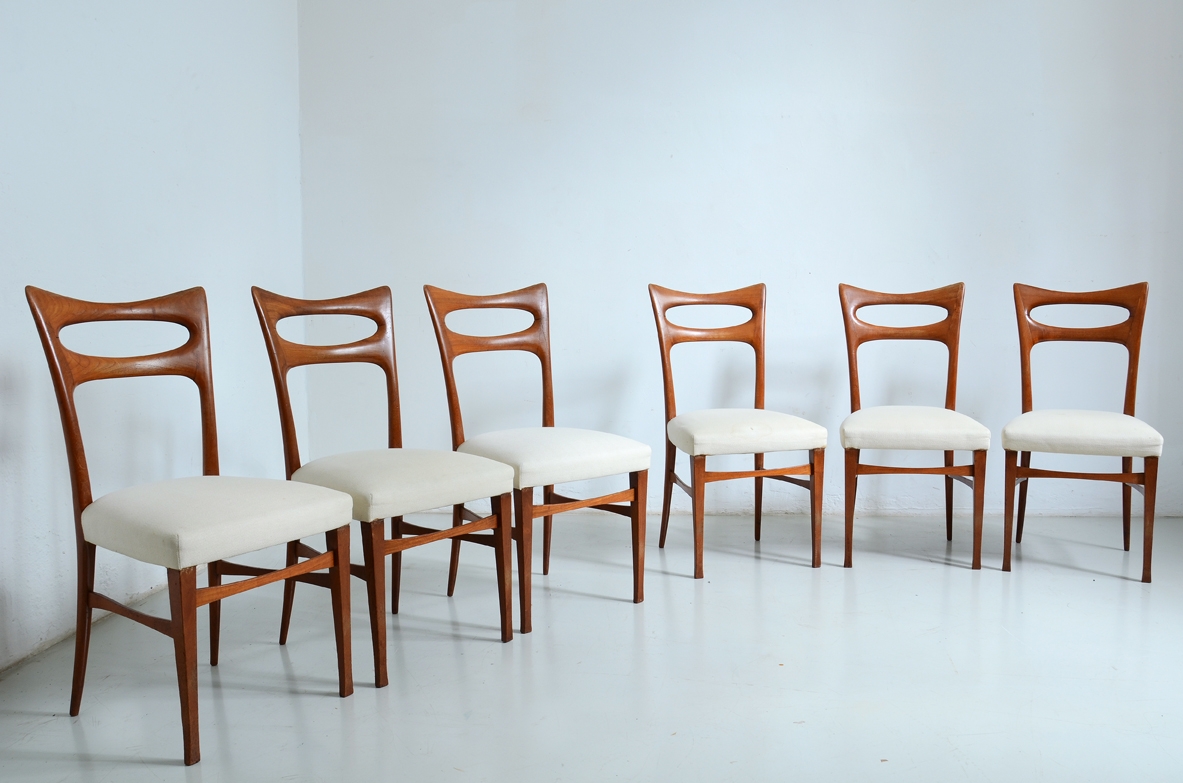 Paolo Buffa, 6 eleganti sedie in ciliegio di grande qualità, produzione Serafino Arrighi 1954.