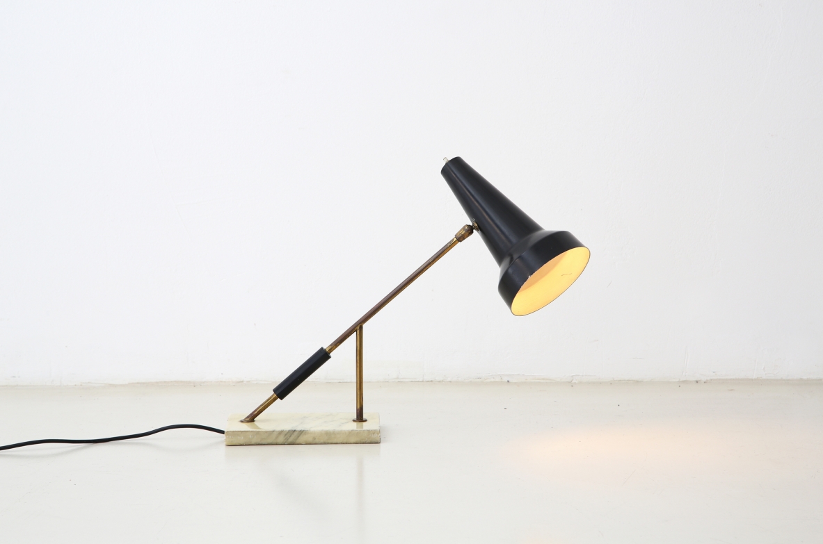 Rare 1950's table lamp in brass and metal with triangular marbe base.