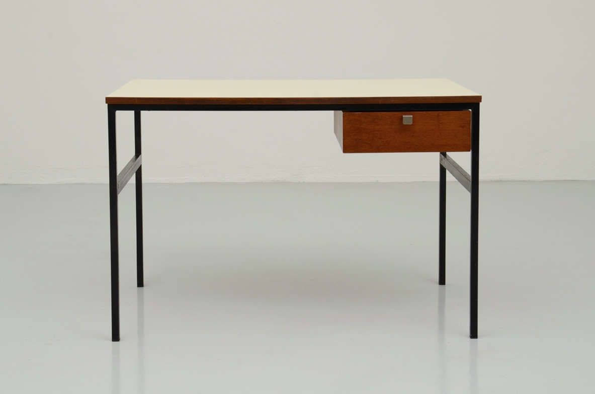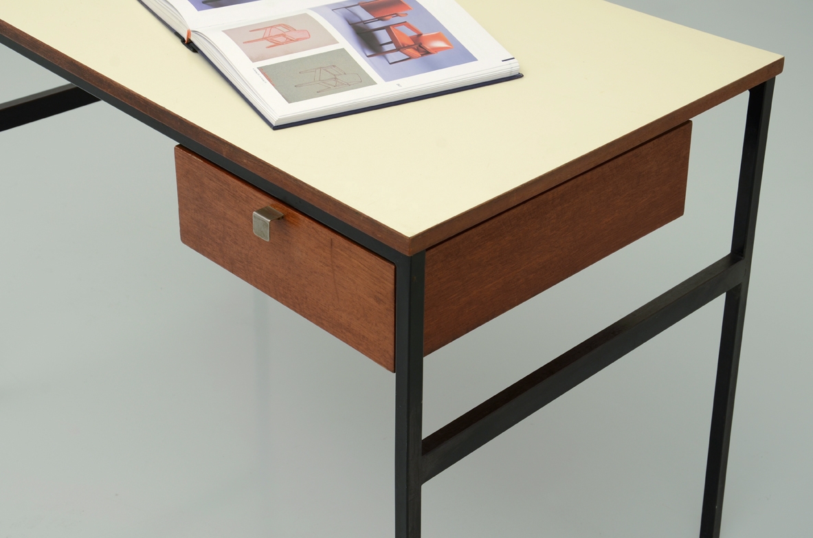/en/detail/pierre-paulin-writing-table-with-metal-structure-white-top-and-one-teak-drawers-france-1962