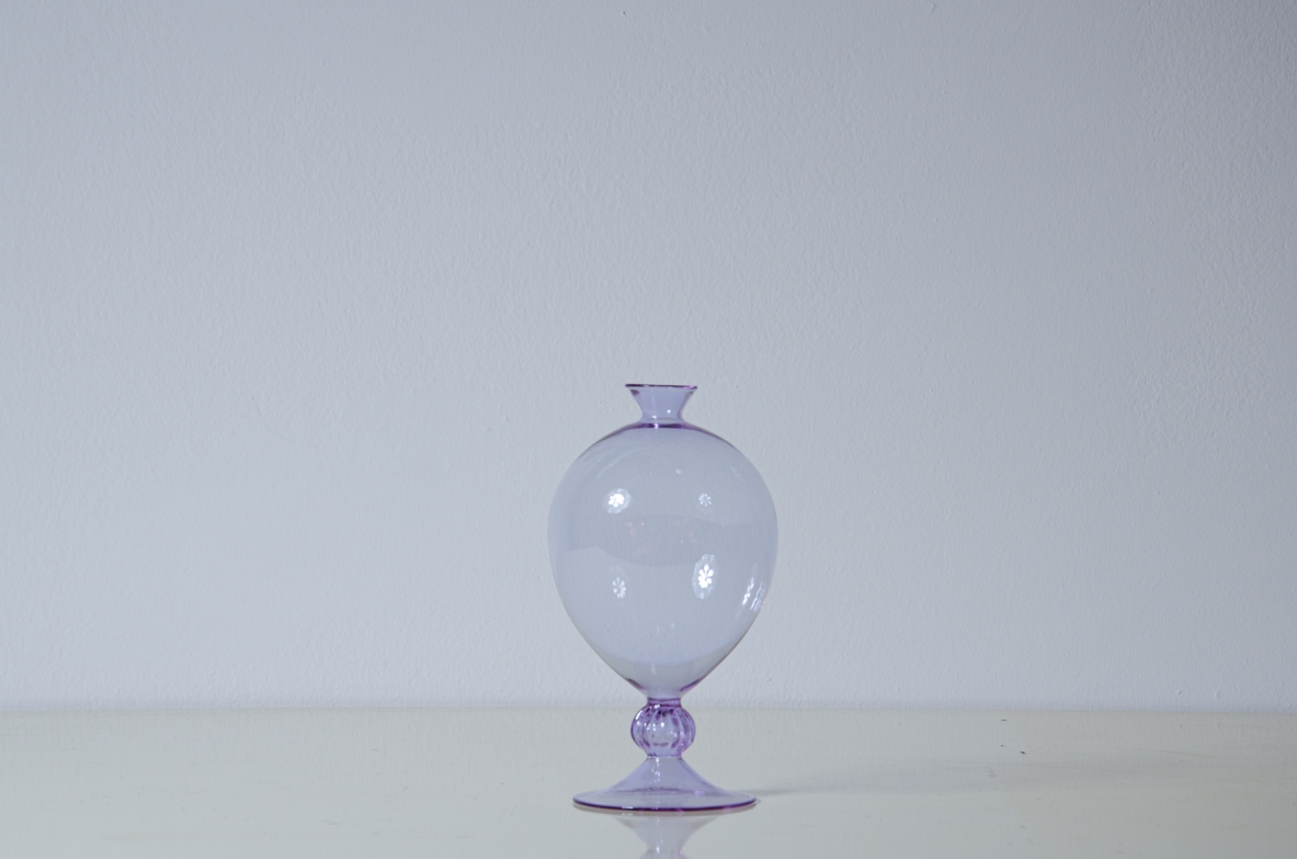 Vittorio Zecchin, vaso Veronese in vetro lilla ametista soffiato e lavorato a mano, Produzione Venini, Murano anni '70.