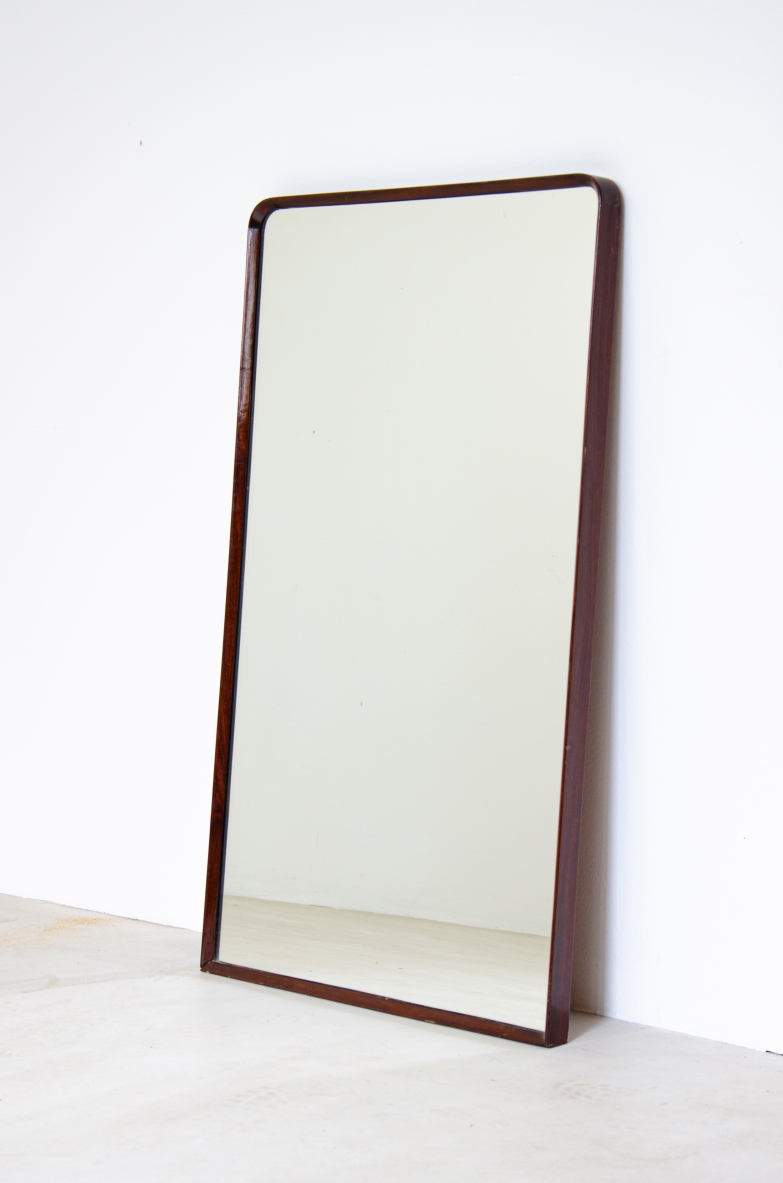 Specchiera da sartoria con struttura in legno e maniglie in ottone. 3 specchi molati e base in legno sagomato.