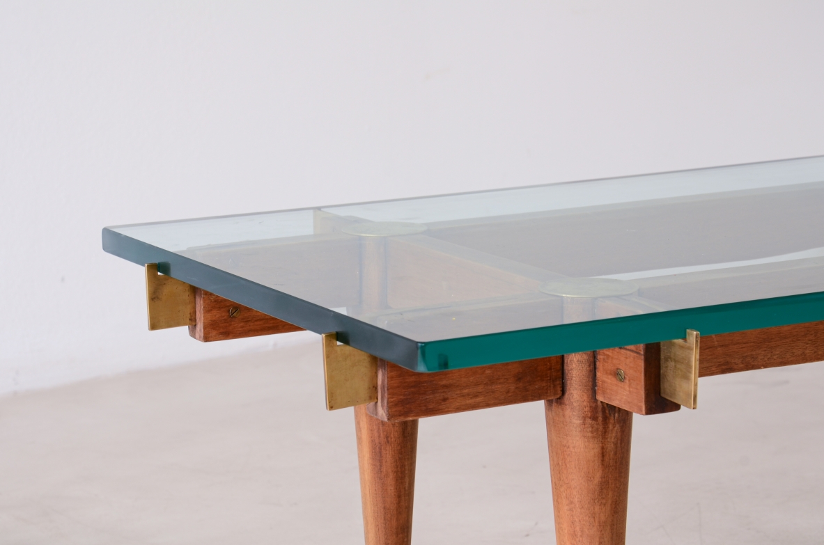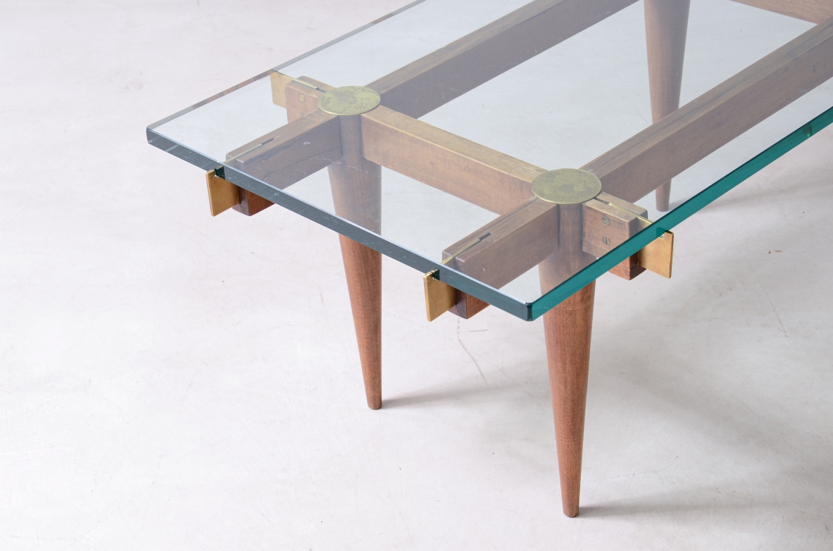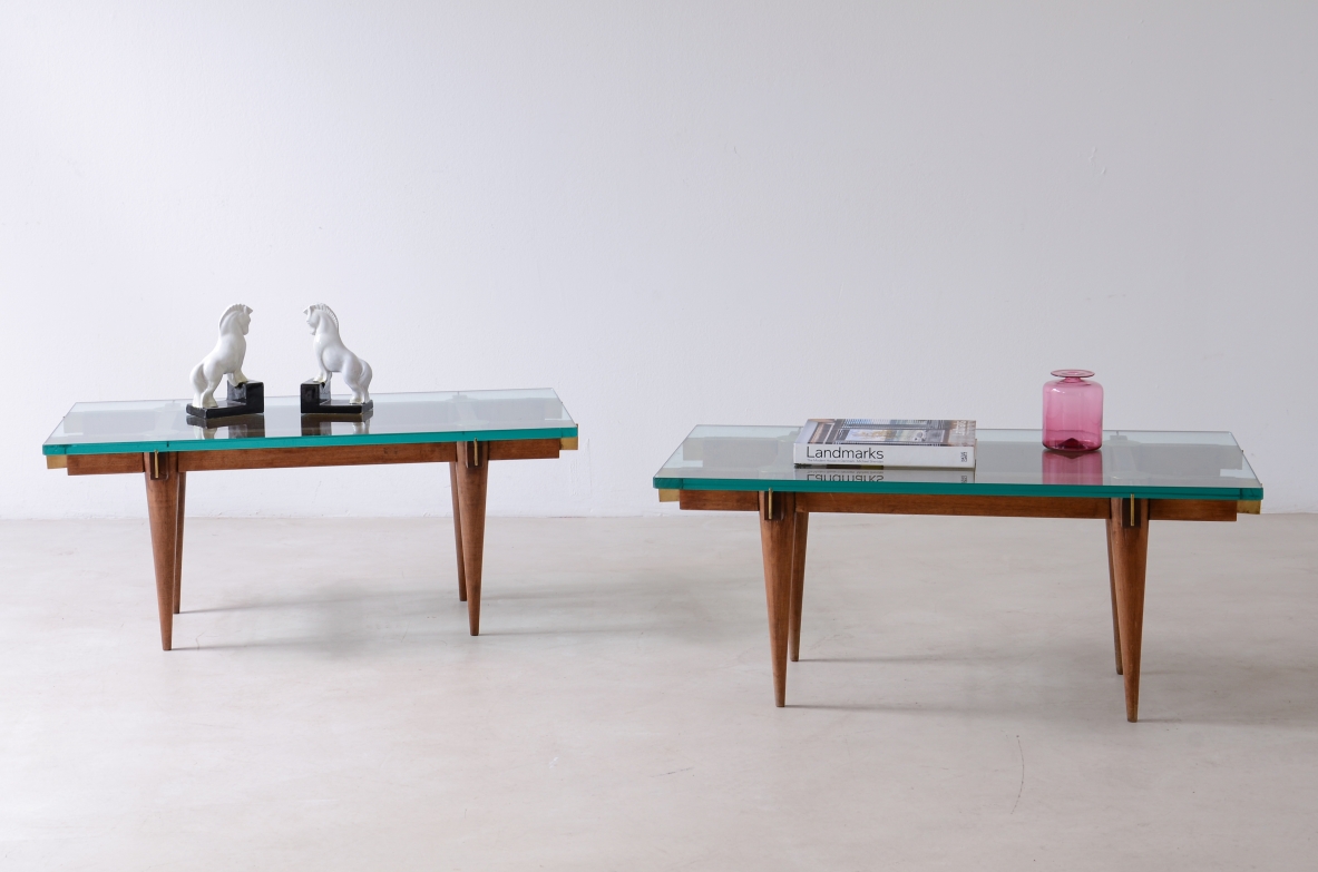 /en/detail/Pair-of-wood-and-brass-coffee-tables-with-thick-glass-tops-1950's