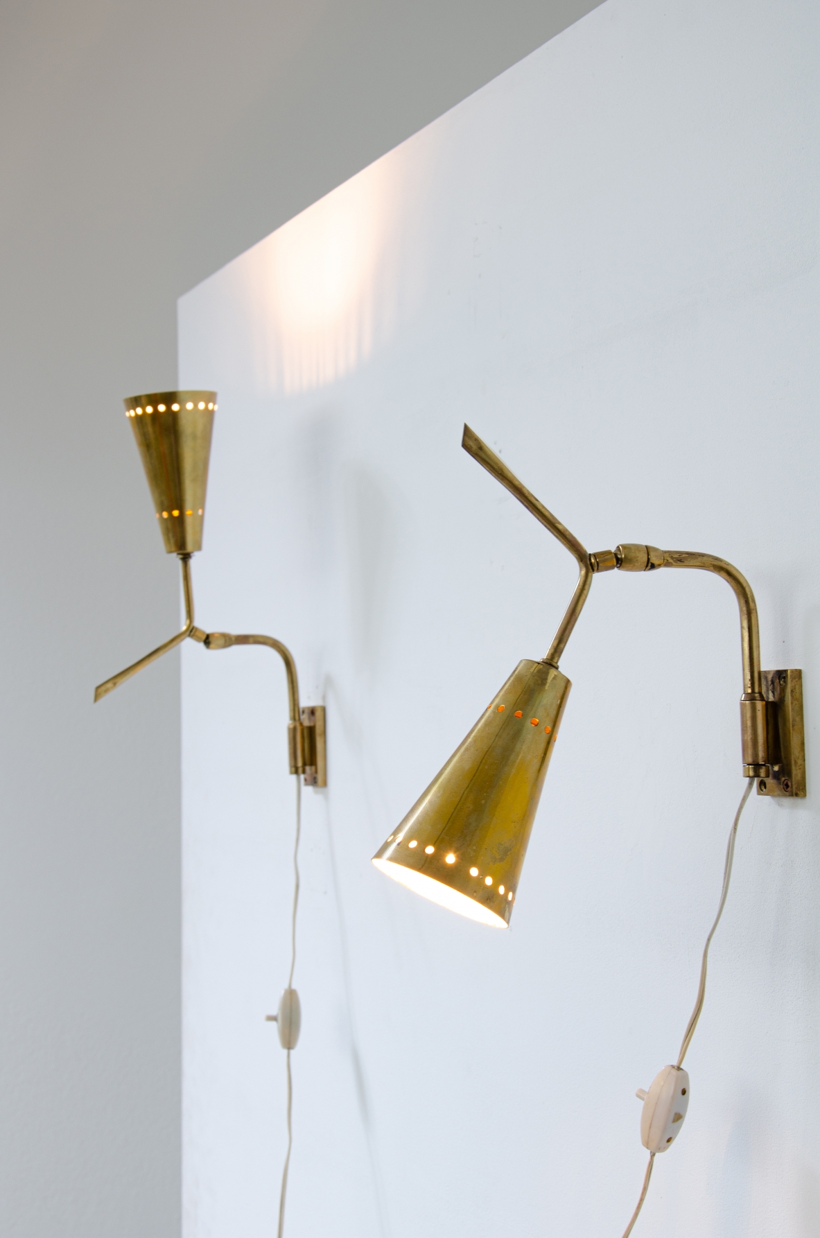 Coppia di appliques regolabili in tutte le direzioni con coni forati in ottone.