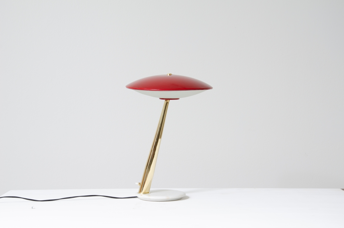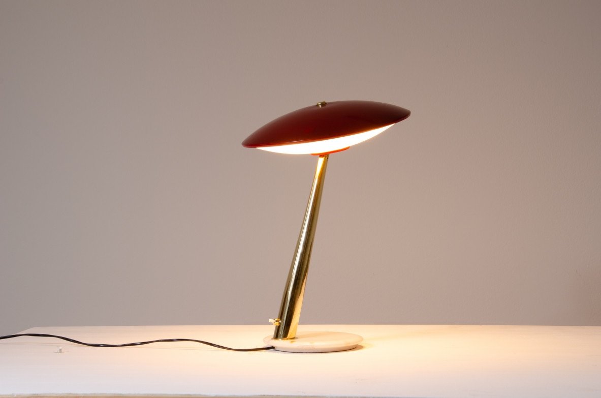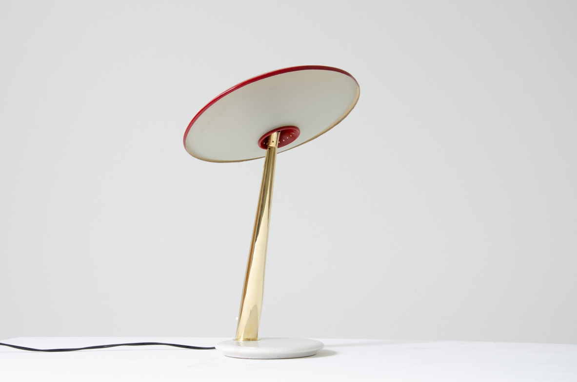 Giuseppe Ostuni, lamapda da tavolo con cappello regolabile in metallo laccato, stelo in ottone e base in marmo.