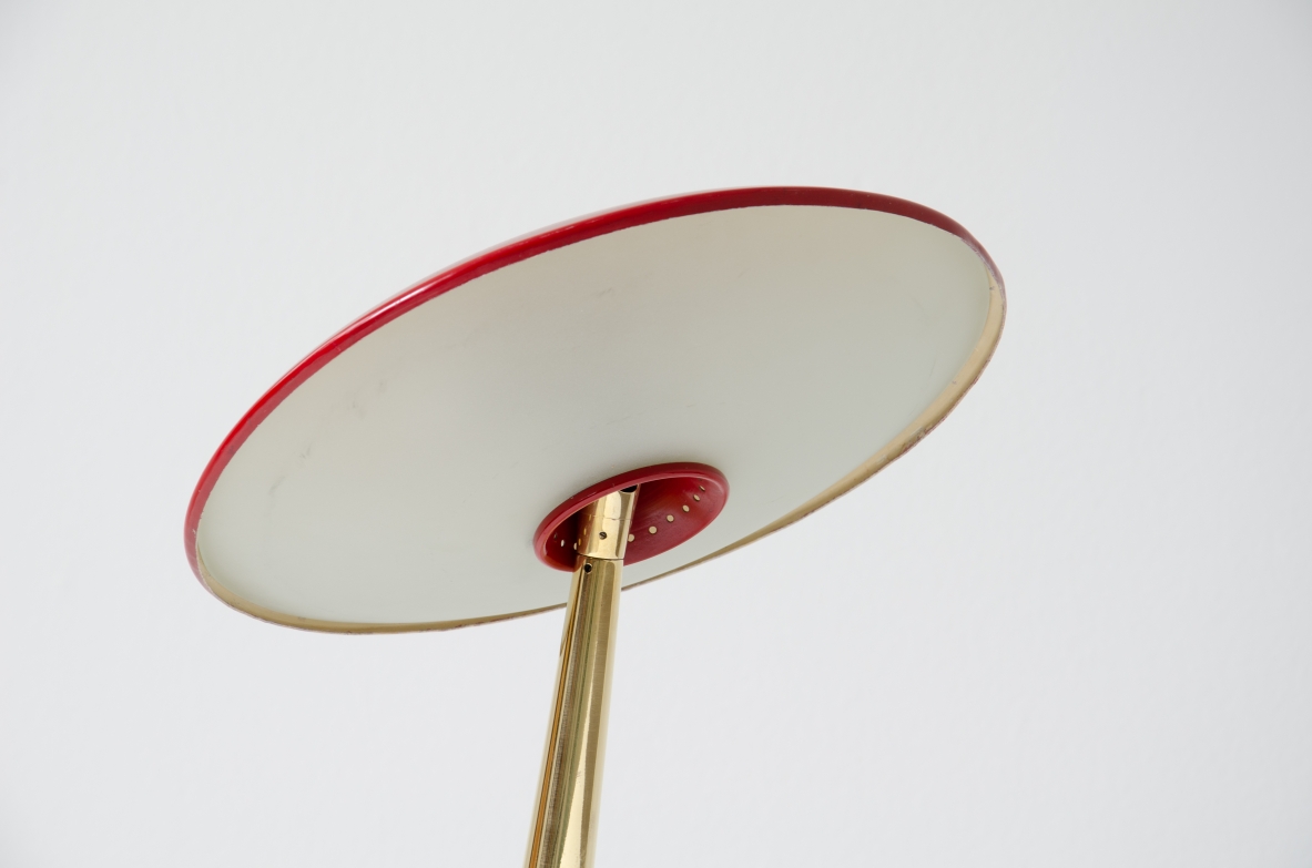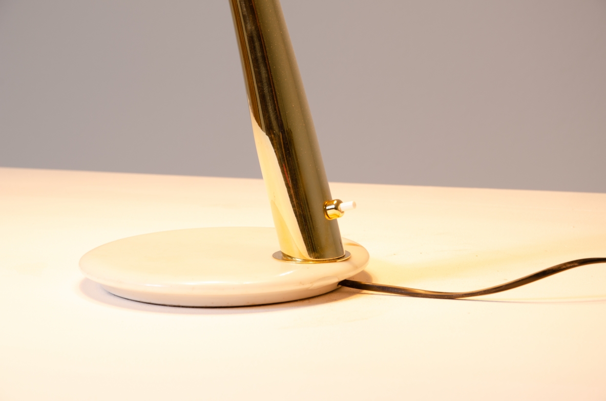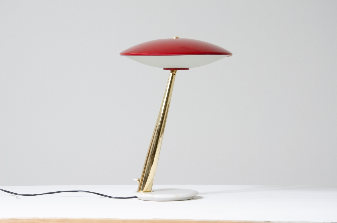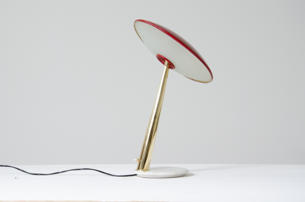 Giuseppe Ostuni, lamapda da tavolo con cappello regolabile in metallo laccato, stelo in ottone e base in marmo.