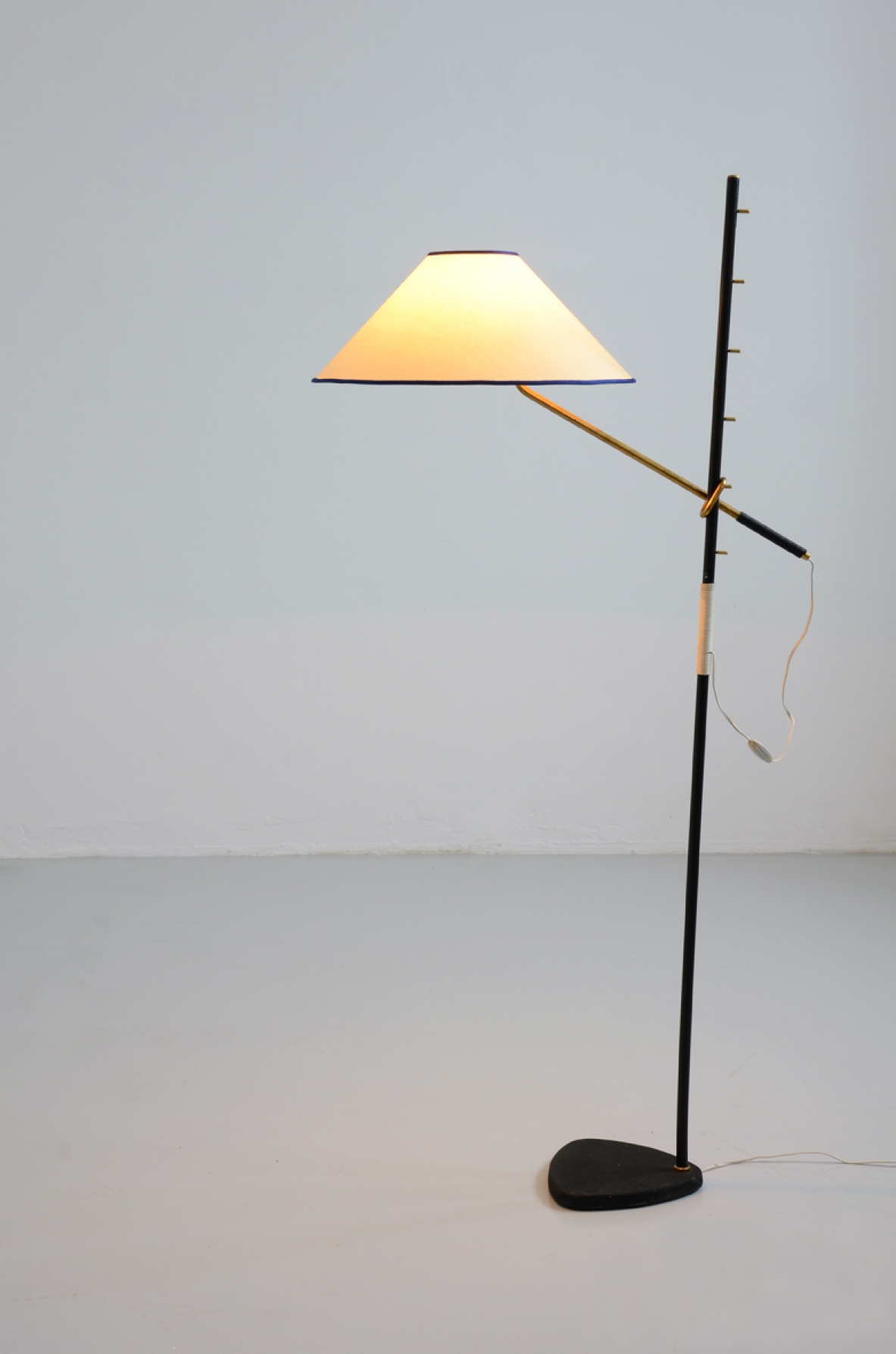 /it/dettaglio/lampada-da-terra-con-struttura-in-metallo-e-dettagli-in-ottone-braccio-regolabile-in-altezza-prod-oluce-1950ca