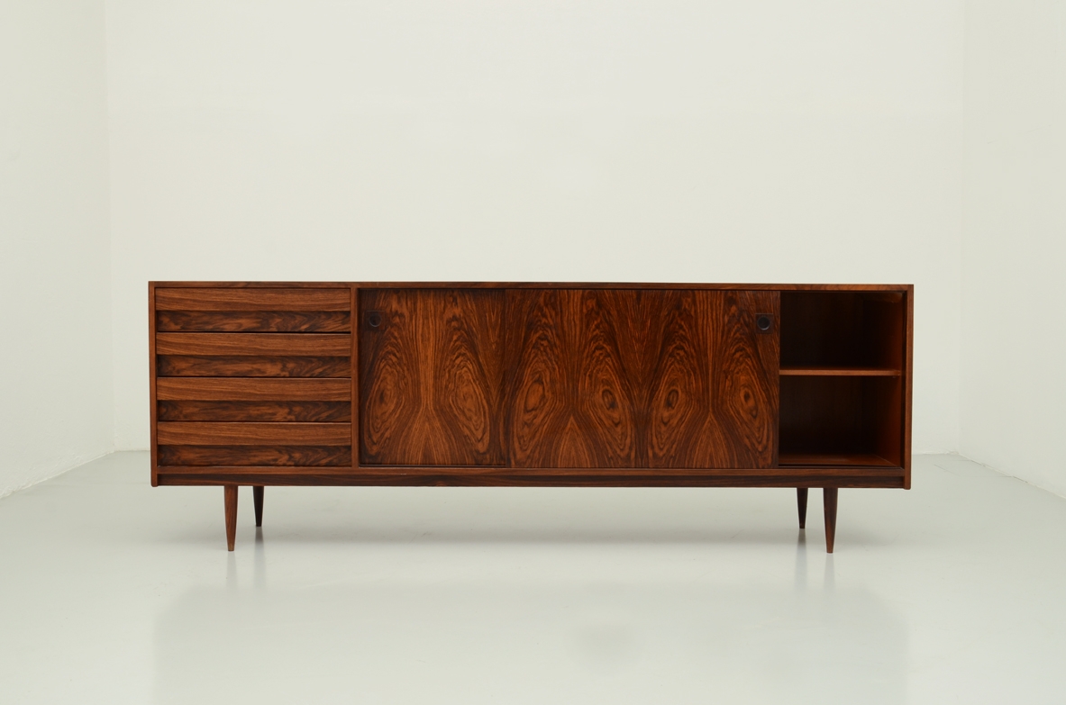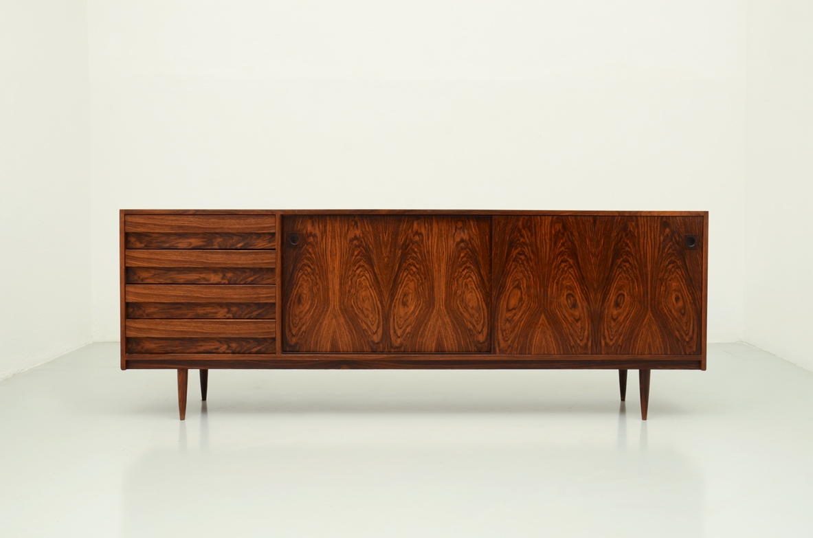 Straordinaria credenza in piuma di palissandro di eccellente qualità e fattura, Italia 1960.