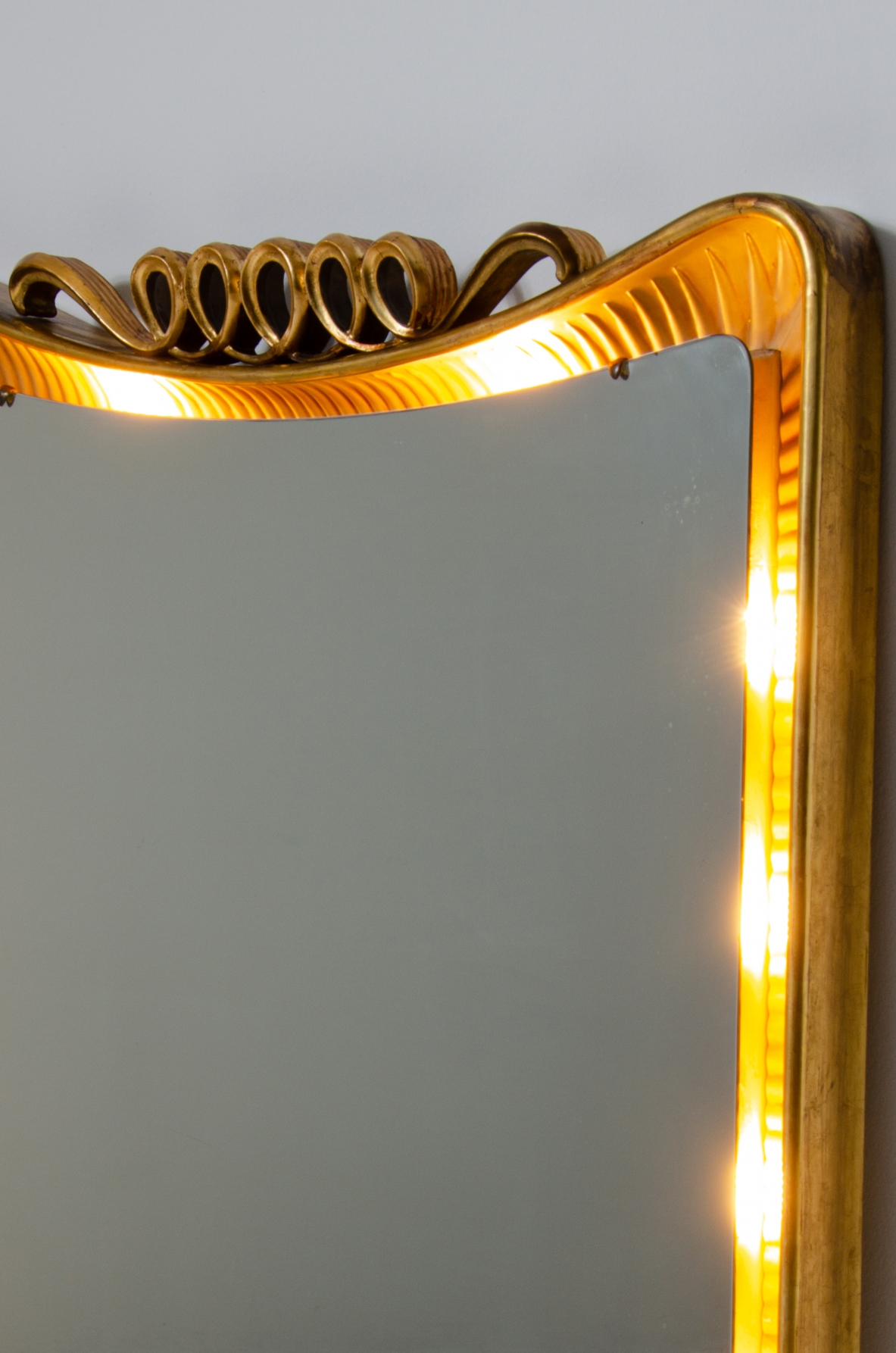 Osvaldo Borsani, rara specchiera retroilluminata in legno dorato.